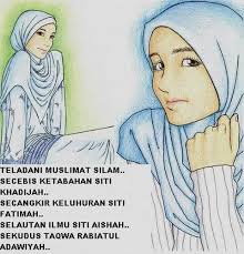 Bisa seteguh Khadijah, yang suci hatinya, tabah dan tenang sikapnya, temanlah Rasul, pengubat duka dan lara ... bijaksana ia, menyimpan ilmu, si teman bicara, dialah Aisyah, penyeri taman Rasulullah, dialah Hafsah, penyimpan mashaf pertama kalamullah ...